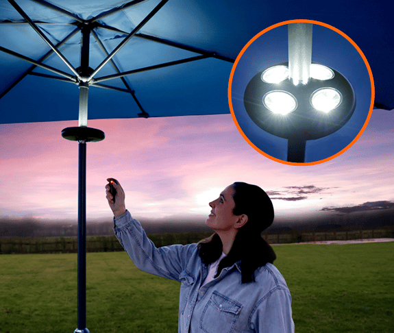 Extend the warm evenings and get more out of your garden with Disc Light, the only garden light DESIGNED SPECIFICALLY TO ATTACH TO YOUR PARASOL to light up your garden table – genius!