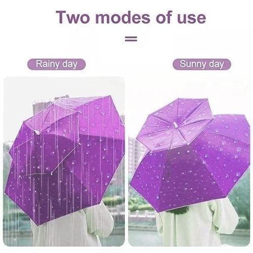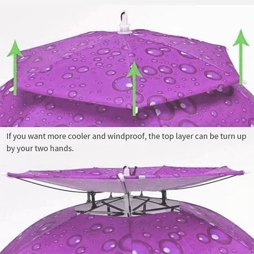 Instead of using a traditional umbrella, try a double umbrella hat!